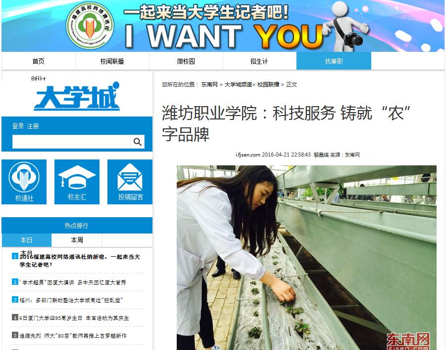 编者按:由山东省教育厅指导、山东省互联网传媒集团主办,大众网承办的“职业教育看山东——2016全国网络媒体山东采风”活动4月18日在济南启动。活动期间,网络媒体采访团前往济南、潍坊、青岛三地九所院校,充分发掘和报道传播山东“现代职业教育体系建设”过程中涌现出的先进典型,“盘点”山东职业教育“十二五”的发展和改革成果,探寻职业教育的“山东样本”,向全国展示山东职业教育发展成就。活动开展以来,各网络媒体陆续刊发了对我院的报道。