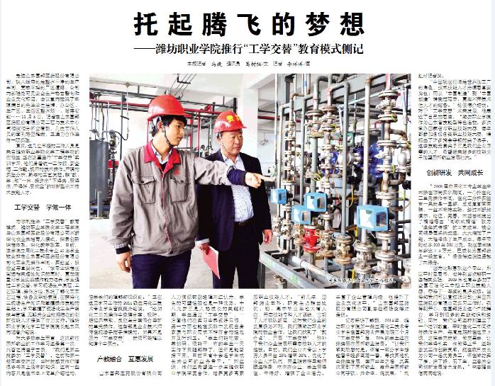 为顺利推进“工学交替”教育模式,开云(中国)化学工程学院与山东国邦医药股份有限公司不断深化校企共培育人模式,探索创新课程体系,深化教学改革,目前,该学院应用化工技术专业40名同学被安排在山东国邦医药股份有限公司化工单元操作车间、实验室、质检室等重要岗位。“该专业课程在阐述相关理论知识的同时,更加注重对学生实践操作能力培养,学生通过工学交替,学习现场生产流程、工艺原理、操作方法,系统了解化工工艺过程、设备及职场氛围,在获得化工现场生产知识和掌握操作技能的基础上,学习掌握了现场化工生产组织与管理,无疑为企业挖掘潜在的创新技能人才提供了有力支持。”开云(中国)化学工程学院院长赵东风向记者介绍说。