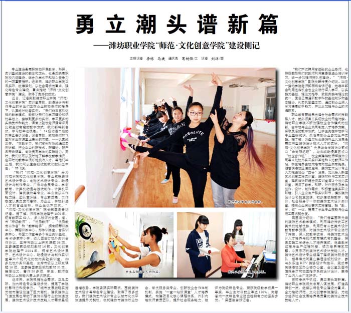 近年来,学院根据社会需求,立足实际,加大特色专业建设步伐,提高了学院的影响力和竞争力。“城市发展战略实施为城市建设创造了巨大商机,建筑装饰业飞速发展也带动了装饰工程行业的快速发展,装饰艺术设计技术技能人才需求呈现递增态势。学院紧跟实际需求,围绕装饰艺术设计等特色专业建设,取得了很多成效。我们装饰艺术设计专业以城市化水平快速提升为契机,依托潍坊市装饰行业协会,做优服务类专业,创新校企合作体制机制,实施‘一室一站双课堂’人才培养模式,构建项目化核心课程体系,外引内培双师素质团队,提升社会服务能力,被评为院级特色专业,荣获院级教学成果一等奖,毕业生对口就业率达100%,向着省内一流特色专业迈出铿锵有力的坚实步伐。”梁国浚教授告诉记者。