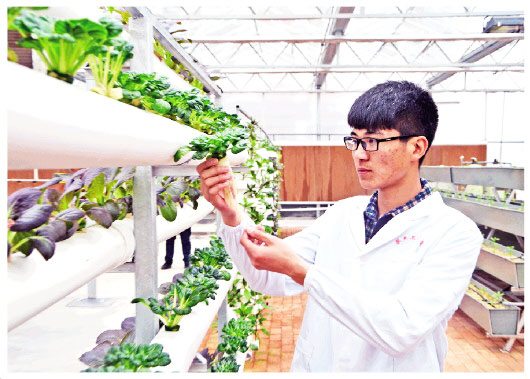 花卉区域内,园林工程学院的学生正在认真记录花卉的生长情况。园林工程学院副院长窦京海告诉记者:“每个花卉品种都有特殊的习性和生长周期,熟知每个花卉品种的习性是学生们的必修课程,学院安排学生值班记录,能够加深学生的理论学习,培养学生的实践动手能力。”据了解,蔬菜区域主要栽种黄瓜、辣椒、生菜等22大类24个品种上万株,花卉区域主要栽植矾根、长寿花、大花绣球3大类48个品种八千株。“我们在智能温室进行实训,教、学、做一体化,激发了学生的学习兴趣,提高了学生实践动手能力,为学生走向工作岗位打下了良好基础。”窦京海如是说。