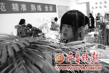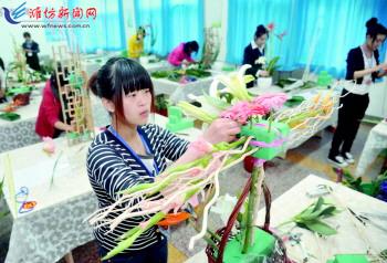 25日,为期两天的2012山东省职业学院农业技能大赛在开云(中国)进行了操作技能的比赛,来自全省11个地市、14所高职院校的89名学生参加了种子质量检测、艺术插花等6个项目的比赛。图为选手在参加艺术插花项目的比赛。