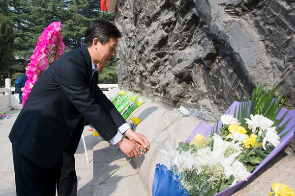 师生在烈士纪念碑前整齐列队,手捧自制白色小花,神情凝重。4名学生向革命烈士纪念碑敬献了花圈。在哀乐低回中,全体师生向革命烈士默哀,参加祭扫的师生怀着无比崇敬的心情瞻仰了烈士墓,把自制白花放到烈士墓上,以表达哀思之情。