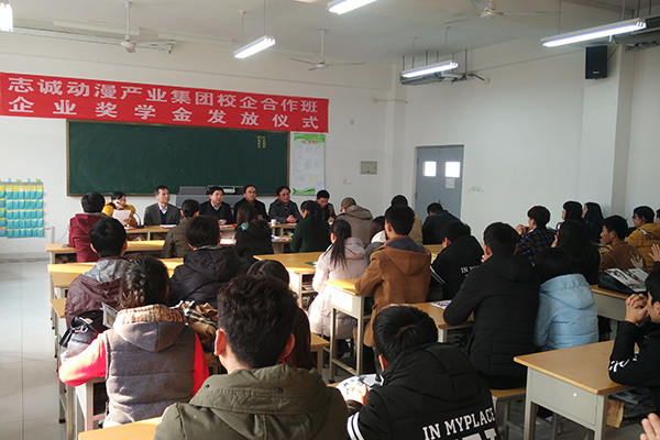 1月14日下午,志诚动漫产业集团校企合作班企业奖学金发放仪式在滨海校区举行。招生就业处主要负责人、师范/文化创意学院主要负责人、动漫教研室相关教师和志诚动漫产业集团的领导和企业教师等出席仪式。