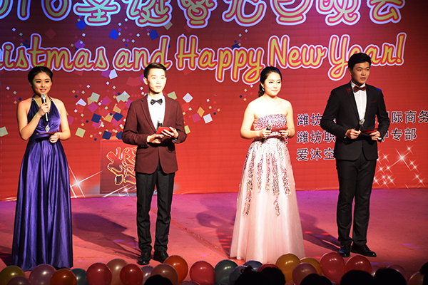12月24日晚19时,伴随着紧锣密鼓的筹备、热情洋溢的动感音乐,国际商务学院“喜迎2016圣诞暨元旦晚会”在奎文校区16号楼报告厅举行。学院副院长毕建华、纪委书记李瑞昌、各职能部门及二级学院负责同志与国际商务学院全体师生共同观看了晚会。