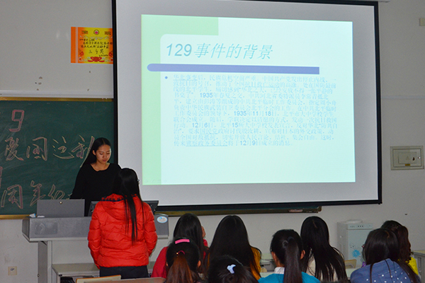 活动中,通过勿忘国耻的多媒体PPT展示、结合当代中国与世界,现代社会与自身进行的如何创造未来,服务祖国讨论发言、感受爱国主义熏陶,表达爱国决心的国歌合唱三个环节,介绍“12.9”爱国运动背景、过程及意义,使大家在视觉冲击中感受历史,激发起强烈的爱国爱党热情。通过开展活动,学生们对关于国家、民族、责任的问题有了更明确的认识,表示要学好专业知识,用实际行动报效国家、奉献社会。(王婷婷供稿)