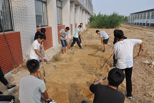 实训以“校中企”潍坊潍职园林工程有限公司承担的滨海校区校园绿化工程为载体,结合正在建设的滨海校区农林实训基地,整合园林植物栽培与养护、园林工程、园林施工图设计、园林工程材料与构造等课程内容进行。实训中,严格按照建设部《园林绿化工程施工及验收规范(CJJ/T82-2012)》进行施工,工序上要求精益求精。实训分两个阶段进行,9月下旬进行园路铺装、砌筑挡土墙、绿化植物修剪等实训;10月下旬将进行月季修剪与扦插,栾树、银杏、枣树等乔木树干保温,大叶黄杨球、红叶石楠等球类保温,小龙柏等小拱棚搭设和树干涂白等实训。