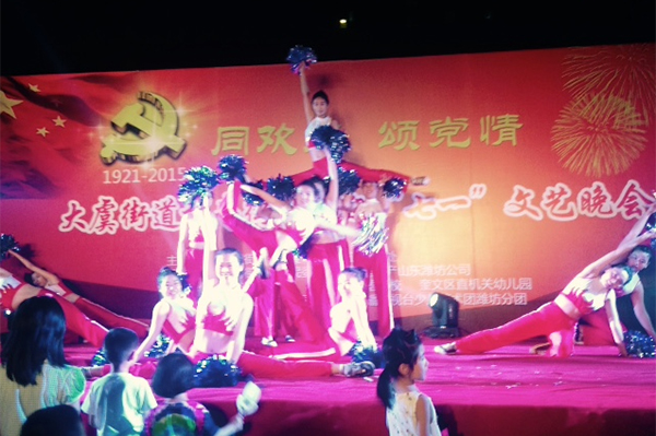 6月17日晚,团委学生工作处组织师范/文化创意学院文艺志愿者,参加了奎文区大虞街道福寿街社区在玫瑰园小区举行的“同欢庆·颂党情”迎七一文艺晚会演出。