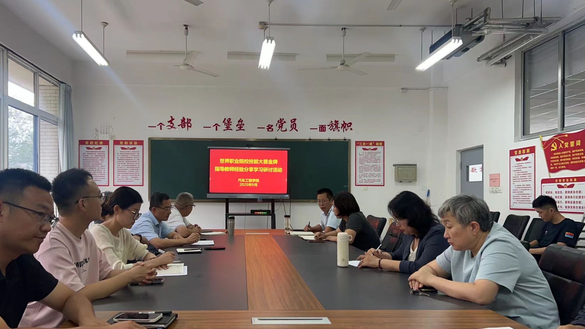 为深入贯彻职业教育“以赛促教、以赛促学、以赛促改”的发展理念,全面提升学院在世界职业院校技能大赛中的竞争力,汽车工程学院于9月18日下午在惠泽2号楼B208举办了“世界职业院校技能大赛金牌指导教师经验分享与教学研讨活动”。我院领导班子成员、各教研室主任、专业骨干教师及竞赛指导团队全体成员参会,共同聚焦赛事突破与教学质量提升,凝聚发展共识。
