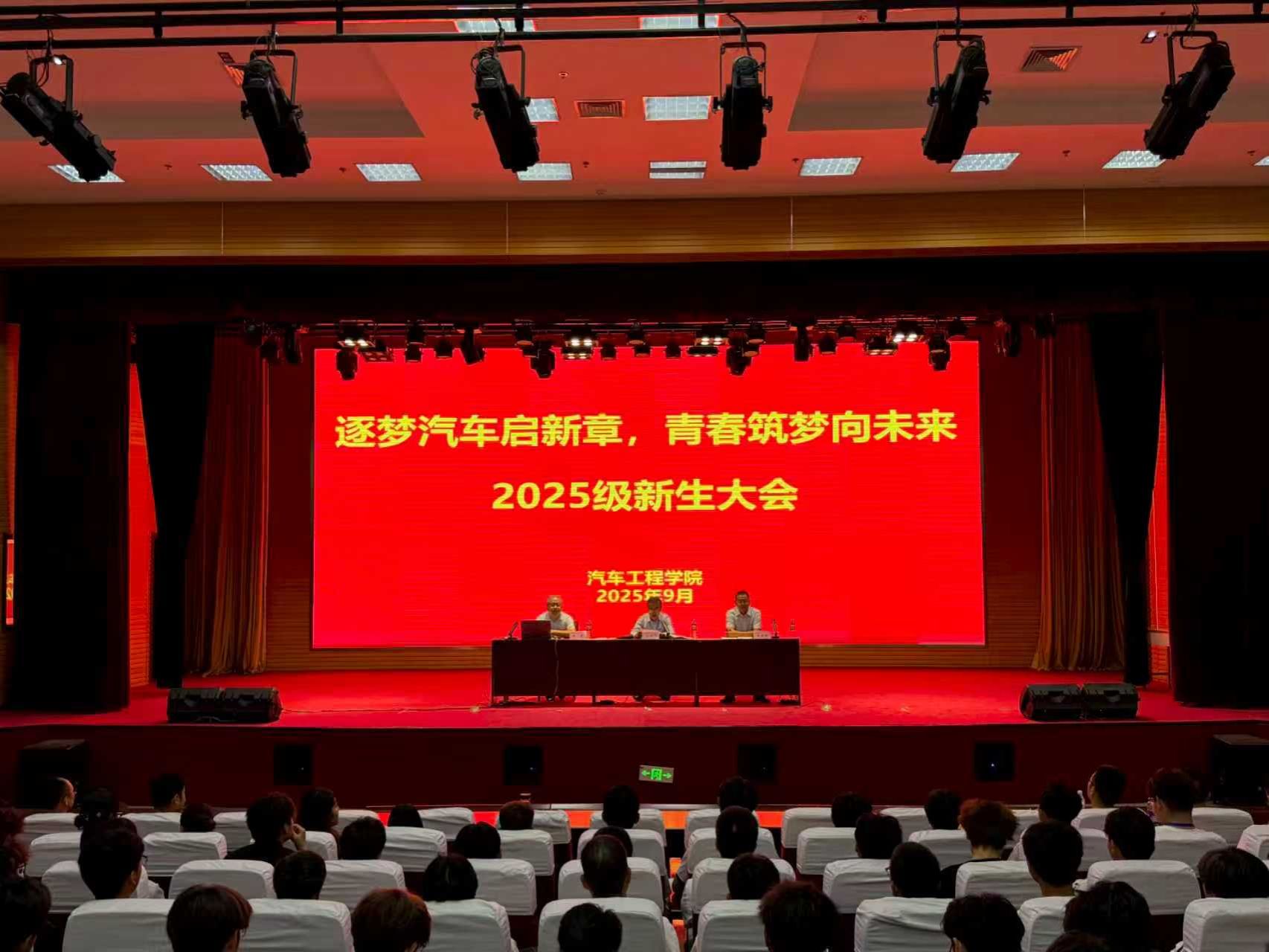 9月25日,汽车工程学院在图书馆报告厅举行2025级新生大会,以“逐梦汽车启新章 青春逐梦向未来”为主题,为全体新生开启大学新征程注入信念与力量。大会由汽车工程学院院长主持,汽车工程学院党总支书记、分管学生工作副院长分别作专题报告,2025级全体新生及辅导员参会。