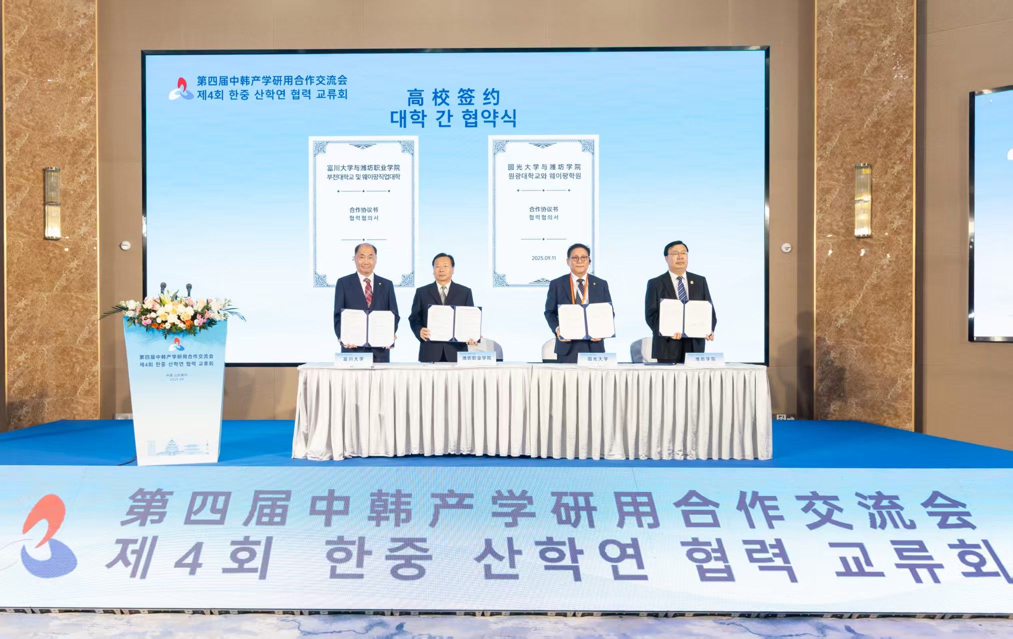 9月11日下午,第四届中韩产学研用合作交流会在潍理工酒店举行,我院党委副书记贺志强代表学院与韩国富川大学签署合作协议。12日上午,韩国富川大学韩政锡校长一行9人来我院访问,学院党委书记王浩、党委副书记贺志强在滨海校区会见了客人,国际交流与合作处负责人及相关同志共同参加会议。 贺志强主持会议。