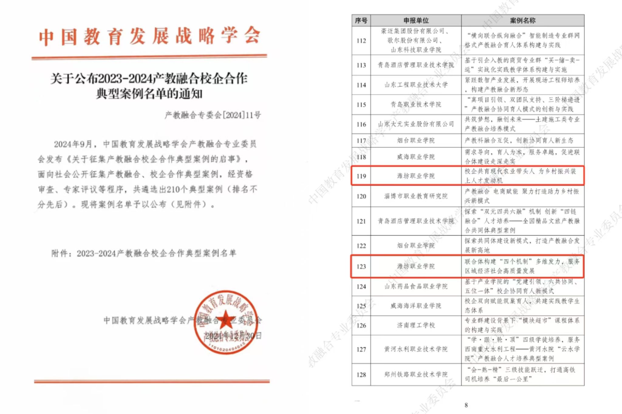 我院2个案例入选中国教育发展战略学会产教融合专委会2023-2024年度产教融合校企合作典型案例