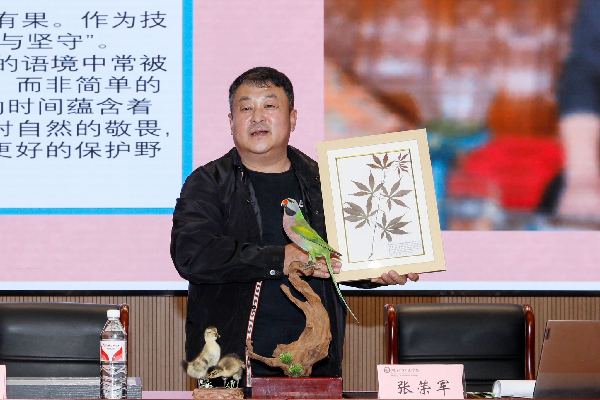 活动中,张荣军作为潍坊市非遗“动物标本制作技艺”传承人,以“匠心续生灵”为主题,系统阐释了非遗技艺的科学内涵与文化价值。他在分享中详细介绍了动物标本制作技艺的历史渊源、核心内涵以及传承与创新的路径,展示了该技艺在科研、教育和文化传承等方面的重要价值,生动诠释了匠人精神的内涵与传承。