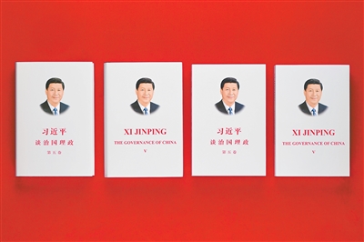中央宣传部(国务院新闻办公室)会同中央党史和文献研究院、中国外文局编辑的《习近平谈治国理政》第五卷,近日由外文出版社以中英文版出版,面向海内外发行。 这是《习近平谈治国理政》第五卷中英文版的精装版和平装版。 新华社记者 李 贺摄 |