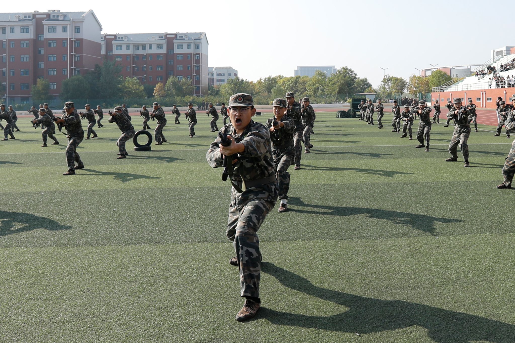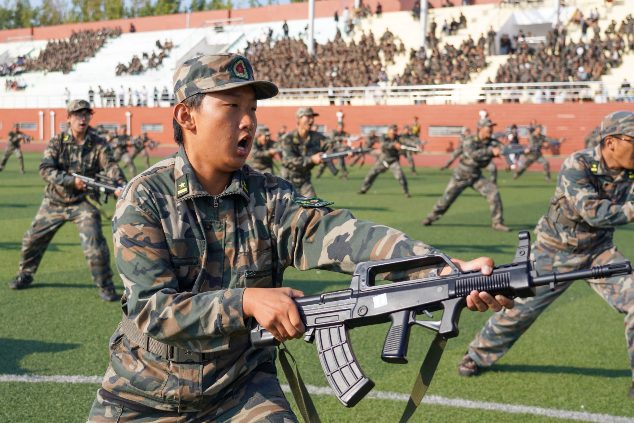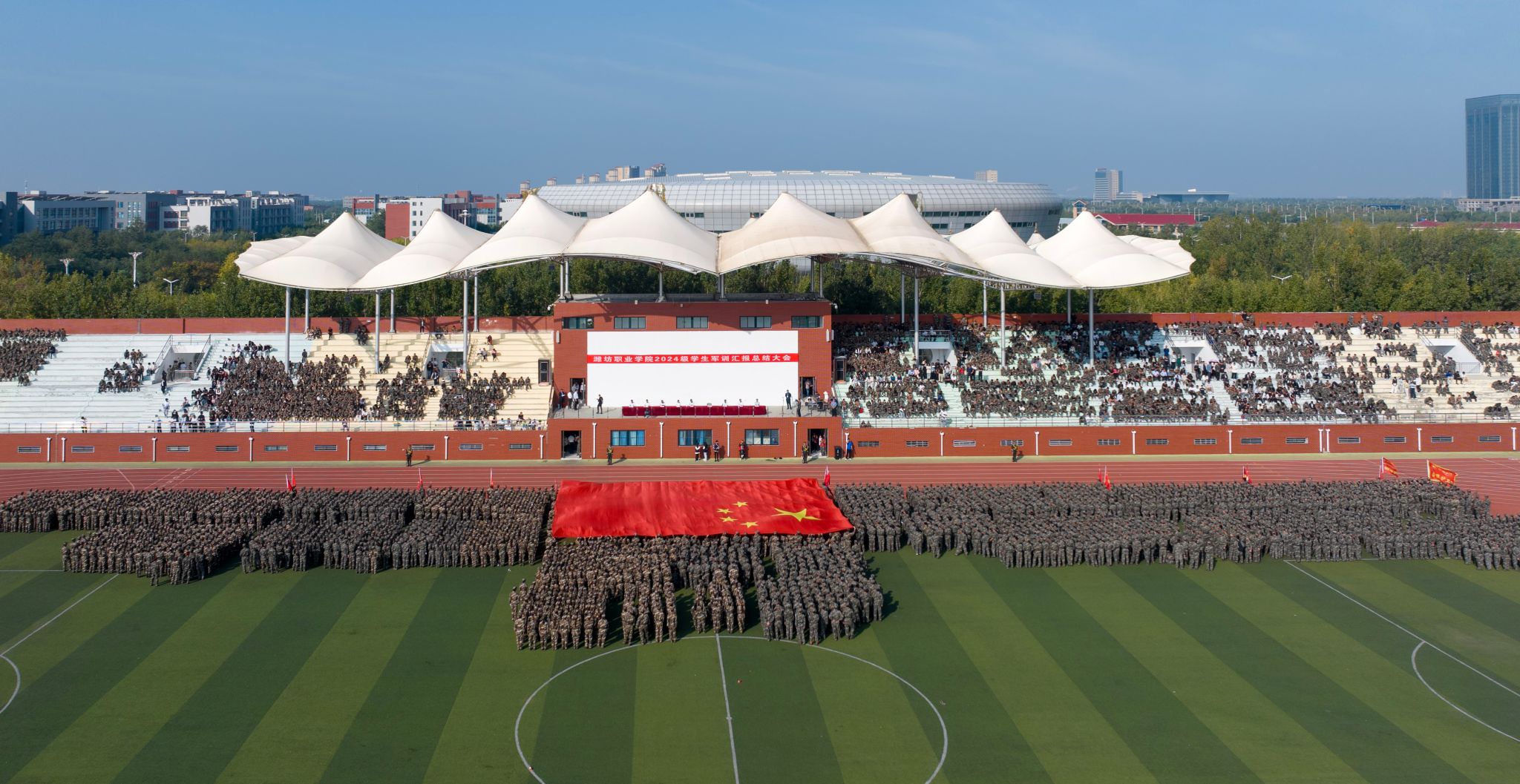 操场上,49个分列式方队整齐划一,精神抖擞,迈着矫健的步伐依次通过主席台,展现出潍职学子斗志昂扬的精神风貌。军训项目展示中,由各团组成的100名同学进行了威风凛凛刺杀操表演,刺杀操是军队的传统表演项目,也是近战歼敌的重要手段,强身健体的同时还能提升团队凝聚力;汽车工程学院80名同学组成的队伍进行了战术基础、战场救护演示,整个活动过程精彩纷呈、吸引了阵阵掌声。来自信息工程学院军体拳表演方队的500名同学通过军体拳表演和集体宣誓,向党和祖国汇报青春的坚定信念。最后,大会在全体新生高声呐喊“请党放心,强国有我”的庄严承诺中落幕。