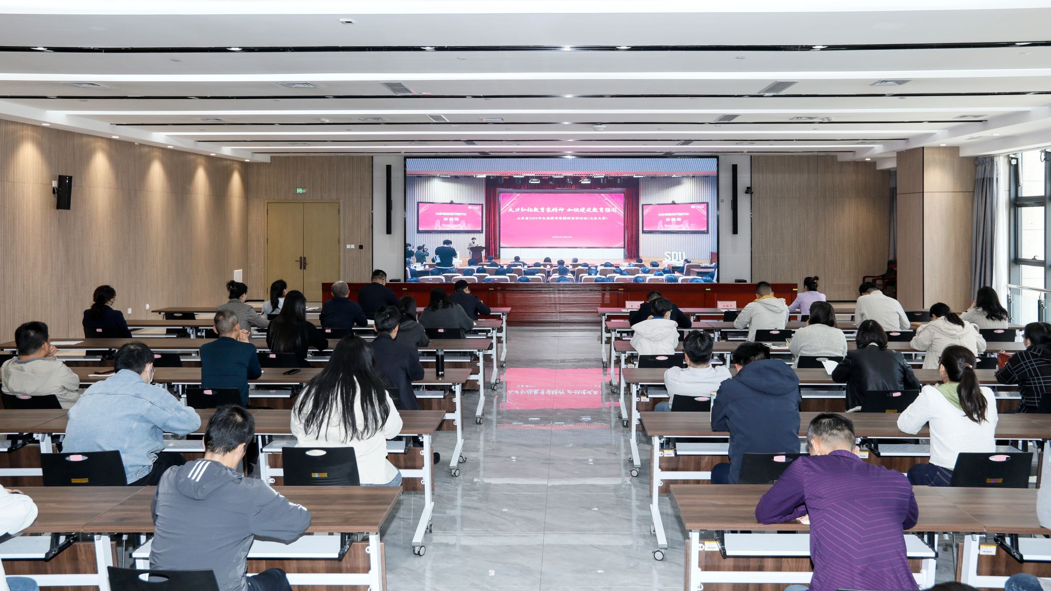 为贯彻落实习近平总书记关于大力弘扬教育家精神的重要指示,提升教育教学理念,4月24日上午,学院在滨海、奎文两校区组织教师集中观看了山东省“弘扬教育家精神”宣讲活动直播,共同感受教育家精神的魅力与力量。