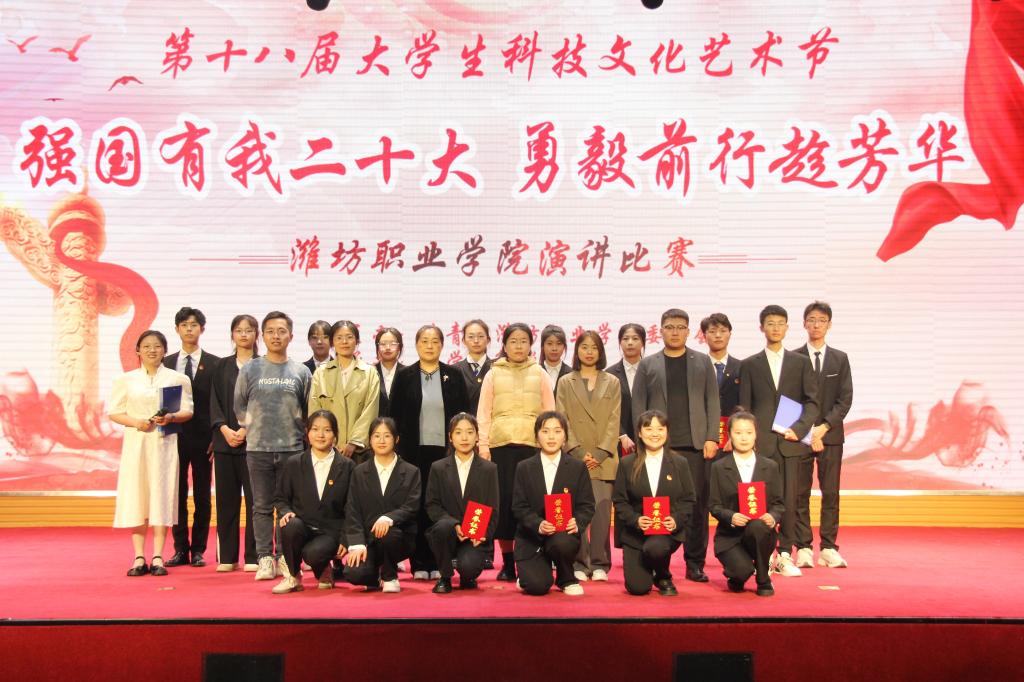 为深入学习贯彻党的二十大精神,由学院团委主办、大学生解说社团承办的第十八届大学生科技文化艺术节之“强国有我勇毅前行”演讲比赛于4月26日在图书馆报告厅举行,学院团委相关负责同志、评委老师及学生代表参加。