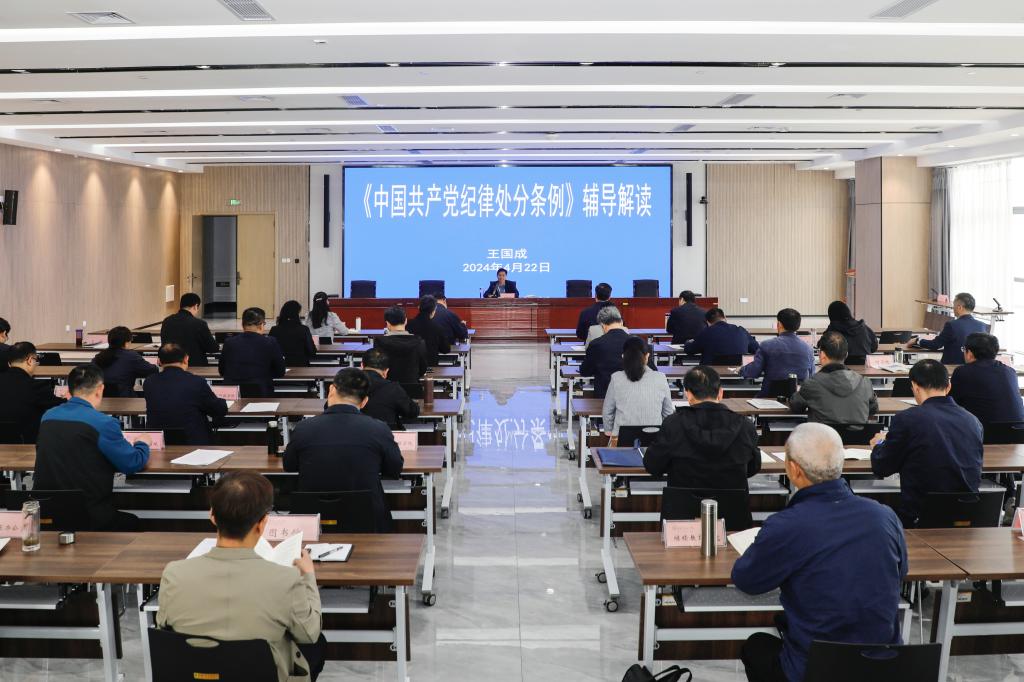 上午,学院党委委员、纪委书记、监察专员王国成作“学《条例》守党纪,内化为日用而不觉的言行准则”专题辅导解读,学院领导班子成员、各职能部门及二级学院党组织主要负责同志参加。王国成围绕新修订《条例》,从两个方面进行了辅导解读。一是要充分认识《条例》修订的重大意义,切实增强学习贯彻的政治自觉、思想自觉和行动自觉。二是要准确把握《条例》修订的主要内容和亮点,切实增强纪律意识、筑牢纪律底线。并就《条例》修订的主要内容,从总则、分则和附则三部分,结合具体案例进行了详细解读。他强调,要强化《条例》的贯彻执行,坚持把纪律挺在前面,促进执纪执法贯通,准确运用“四种形态”,落实“三个区分开来”,把从严监督管理和鼓励担当作为高度统一起来。